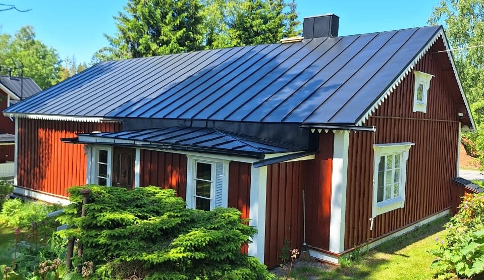 Tämä talo oli hieman rapsakassa kunnossa, Talo homepestiin, irtomaalit skrapattiin, ikkunalaudat irroitettiin ja vaihdettiin uusiin. Tämän jälkeen maalattiin 2 kertaan Virtasen 4-Öljyn maalilla sävyllä Tiira. Katto pestiin panssaripesulla, ruosteet hiottiin jonka jälkeen ruostkohtiin laitettiin tikkurilan rostex maalia. Tämän jälkeen katto maalattiin Liuotinohenteisella Kirjo kattomaalilla, värinä ruoste. Katto maalattiin pensselillä ja telalla.